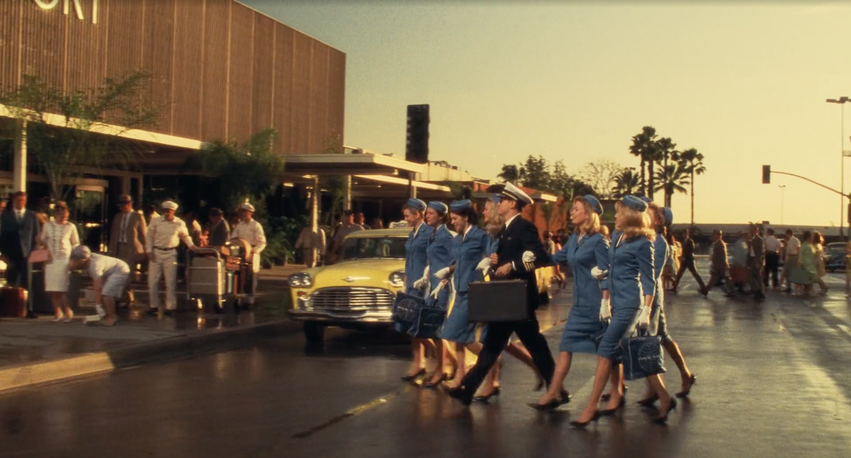 Other places featured in the film, including the Tropicana Motel, the laundromat, the diner, Frank’s Atlanta apartment, and the multiple airports all are great examples of the more modern side of mid-century design. In Frank’s Atlanta apartment, there are many instances of the trendiest pieces of mid-century design at the time. Pieces included a lamp inspired by Robert Sonneman’s 1960s floor lamp, Italian designed wall decor, and Danish teak sideboards.